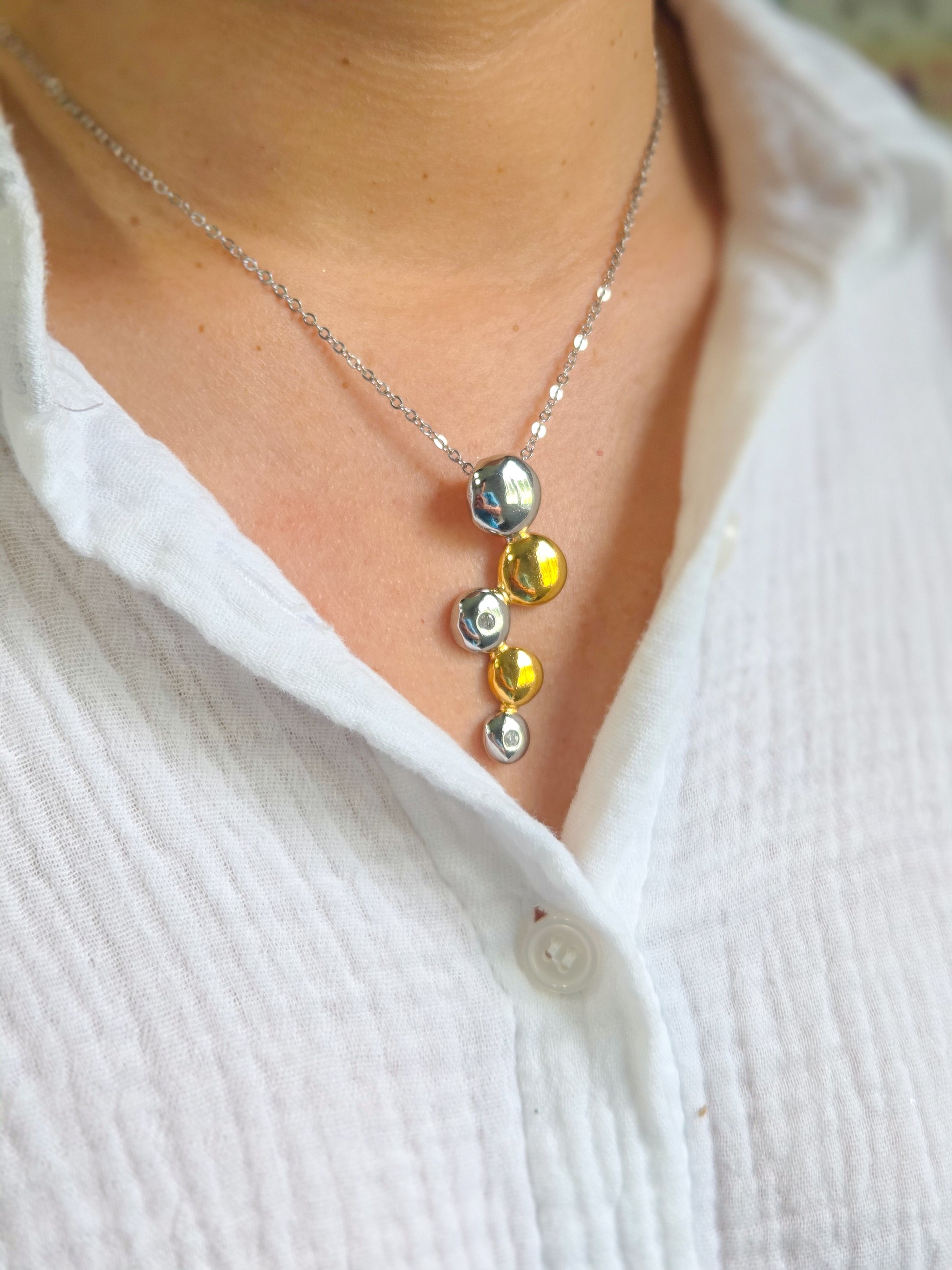 - Cadena dos tonos entre un vibe llamativo, sin ser extravagante para que se opera ajustar a distintos tipos de escotes