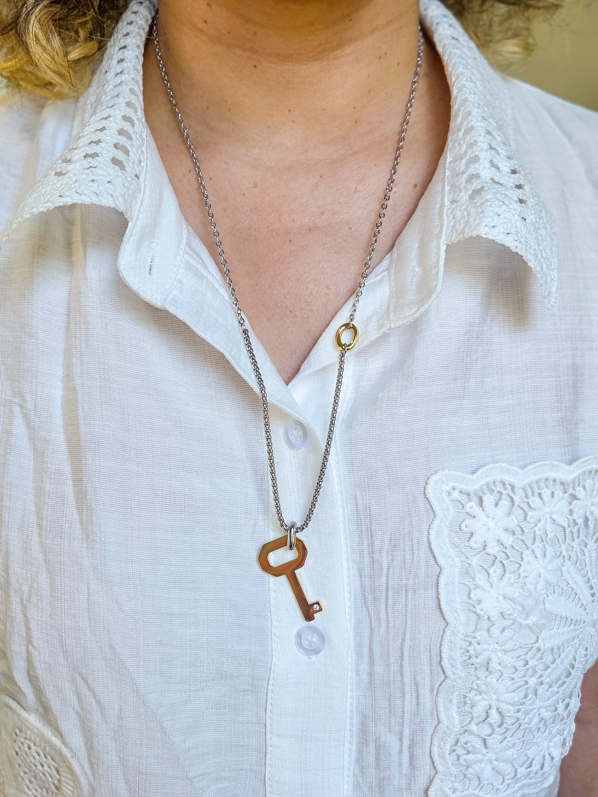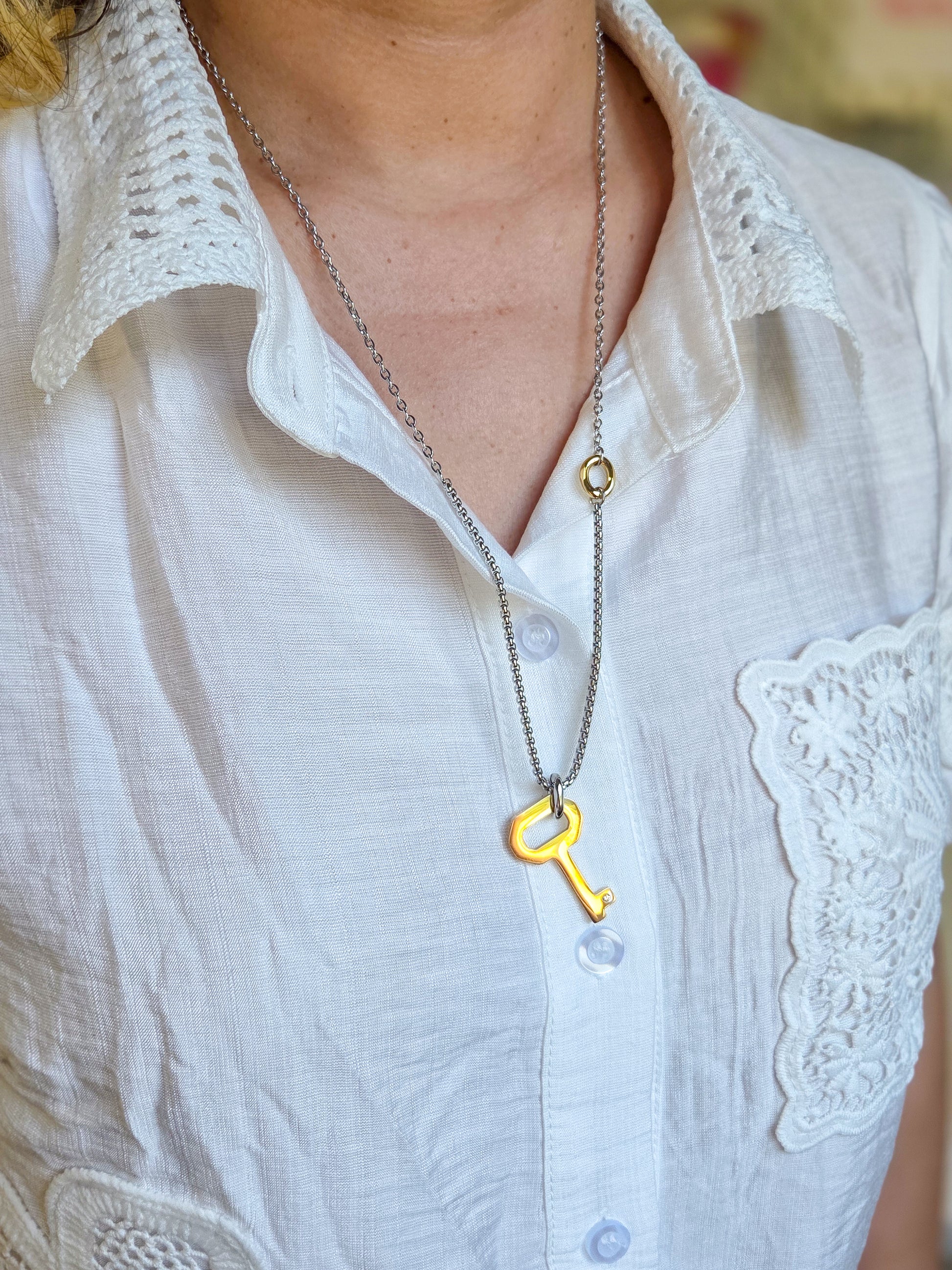 - Cadena dos tonos con charm de una llave
