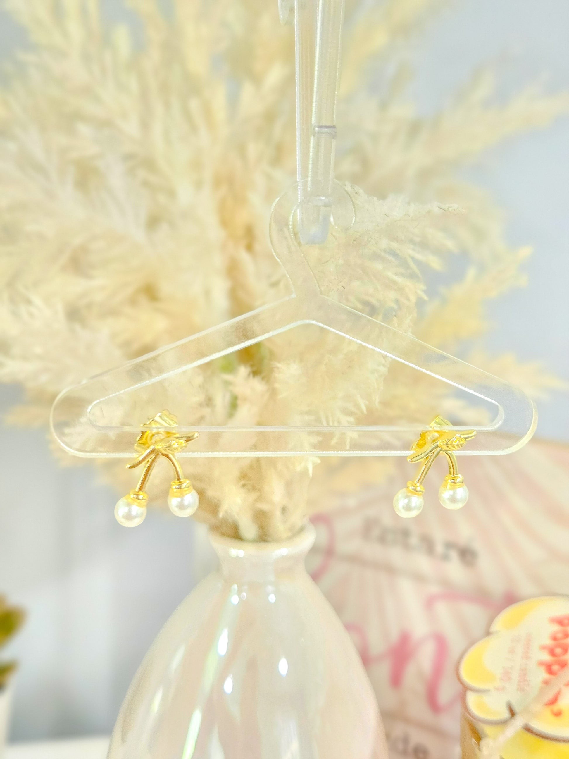 - Delicadas pantallitas en forma de cherrie con un toque delicado de perlitas