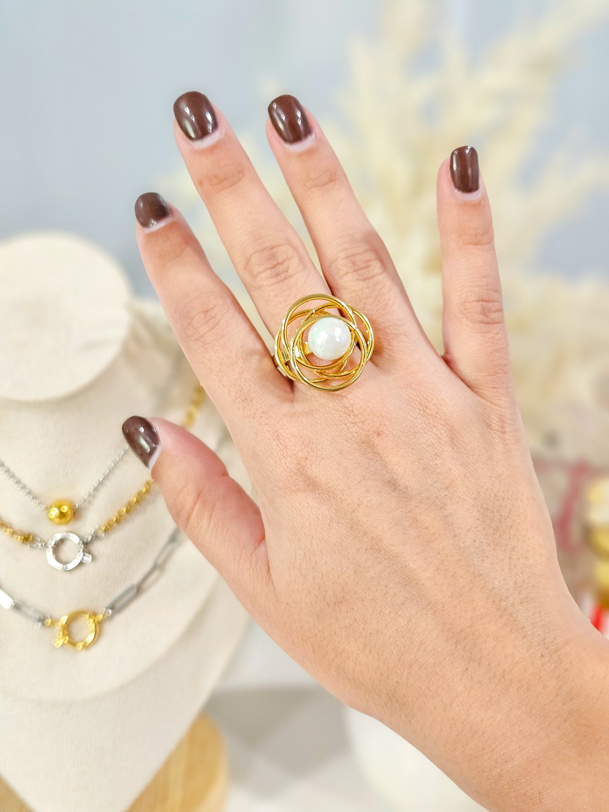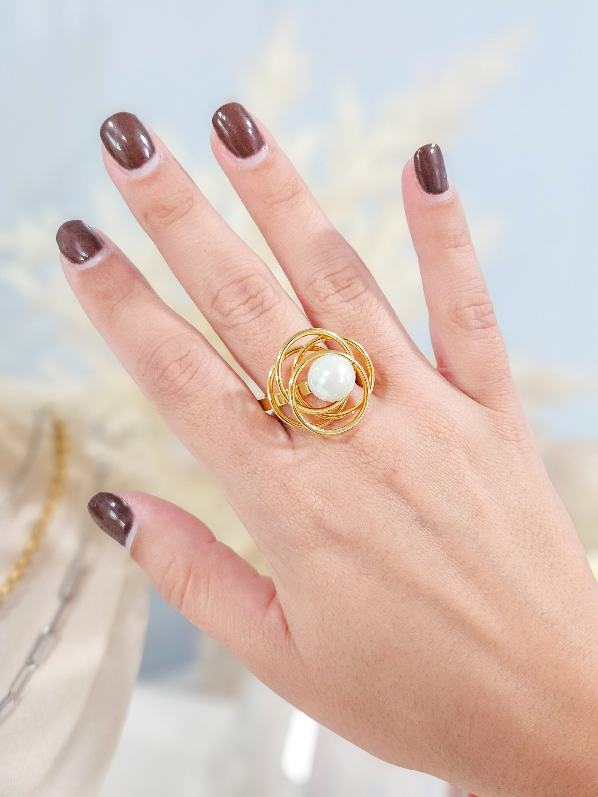 Sortija flor con perla